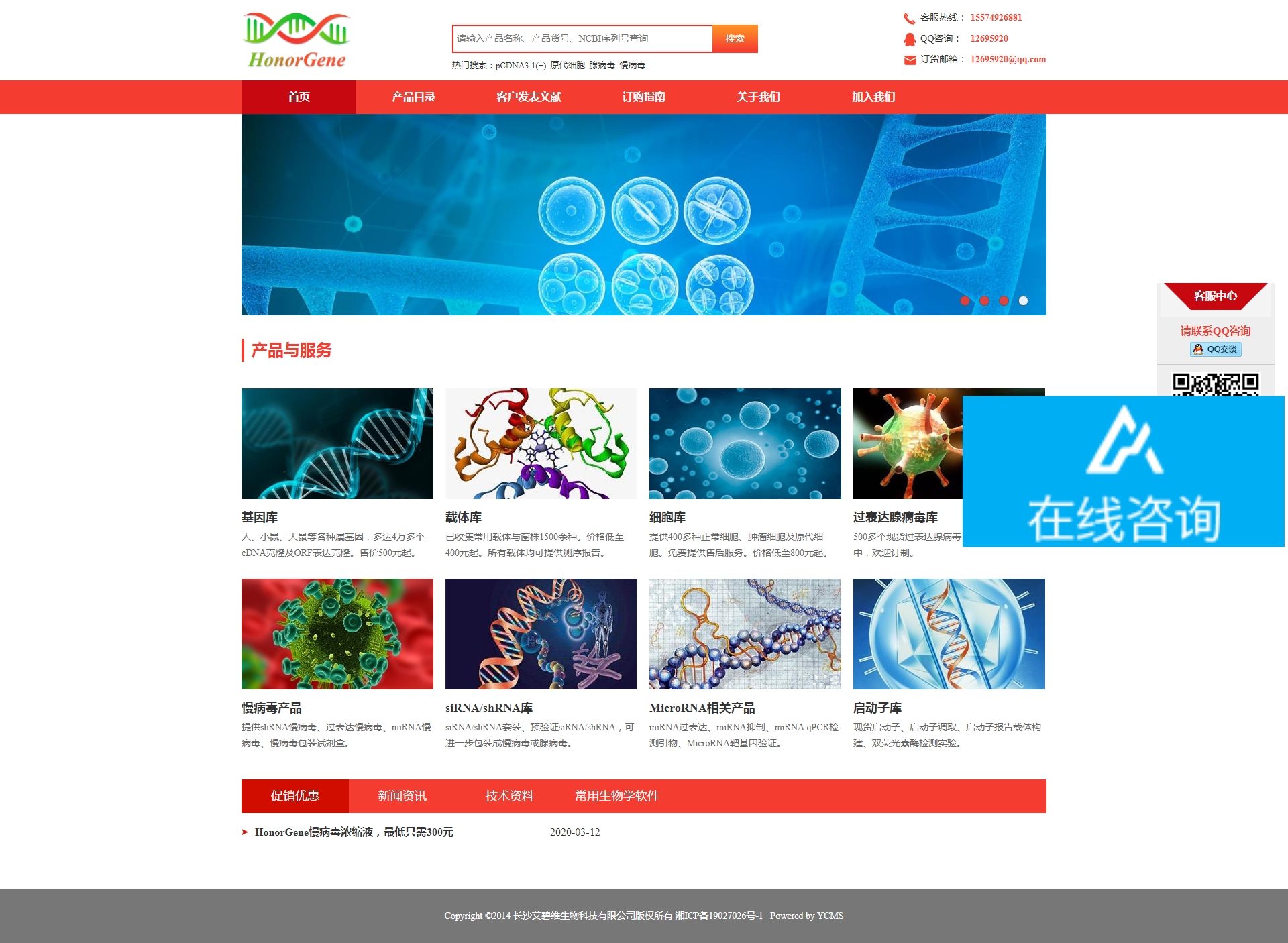 长沙星沙艾碧维生物科技有限公司旗下品牌HonorGene(奥诺基因)是一家研发、生产及销售基因、载体、菌株、细胞、腺病毒、慢病毒、siRNA/shRNA等生物资源产品的高科技公司,致力于为广大科研工作者提供优秀的基因研究资源产品,共同推动生物医学的发展。